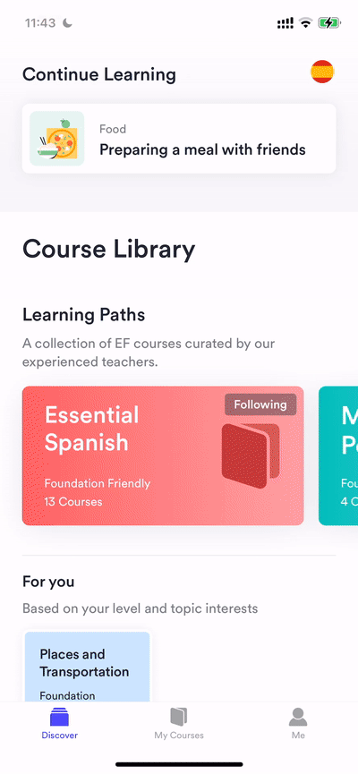 The EF Hello Pro subscription gives you full access to all courses. We offer courses from absolute beginner onwards that cover a full range of topics such as travel or business. All courses cover a comprehensive list of English skills from grammar to speaking, and a whole lot more. You also get access to a universal dictionary, personalized exercises to practice and improve your vocabulary, pronunciation, and listening skills. With EF Hello Pro you'll have our full support to reach your English learning goals.